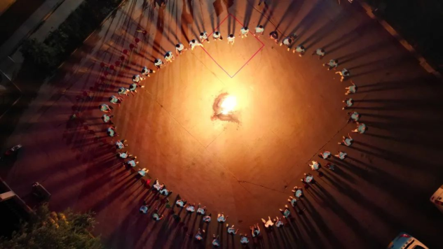 新員工在篝火晚會上進行節(jié)目表演